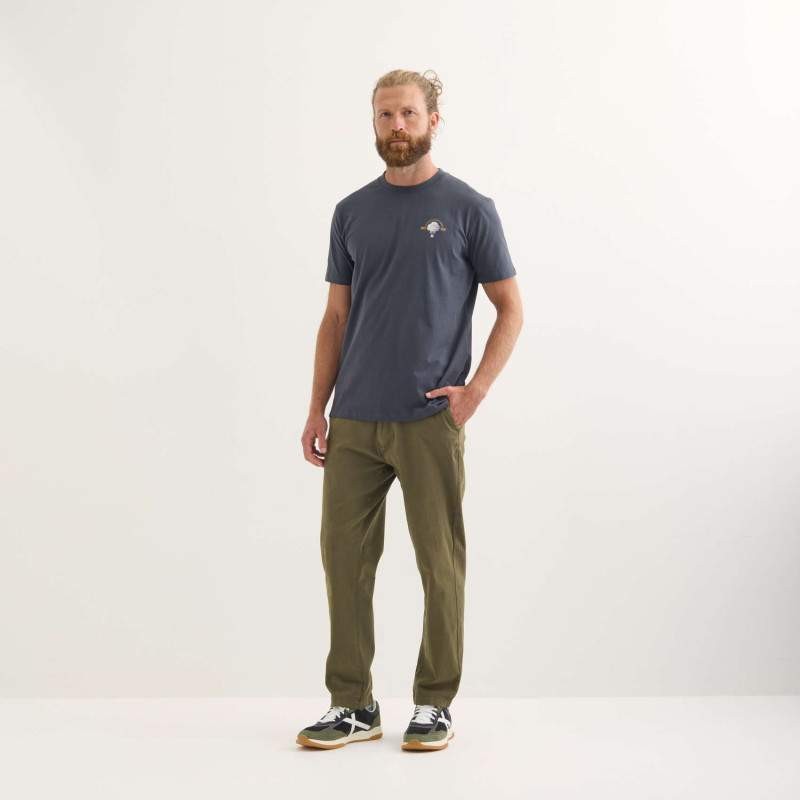 Camiseta estampada en manga corta y cuello redondo, de corte regular y estilo casual. Hecha de algodón orgánico tintado en prenda que resalta nuestro compromiso con la sostenibilidad y le otorga un aspecto vintage y desenfadado.