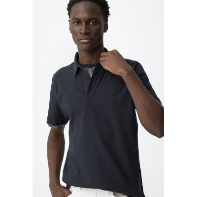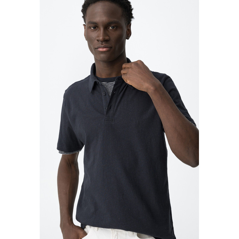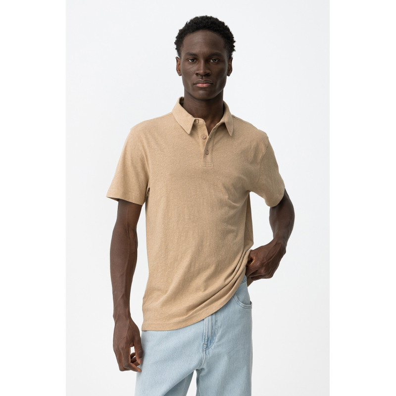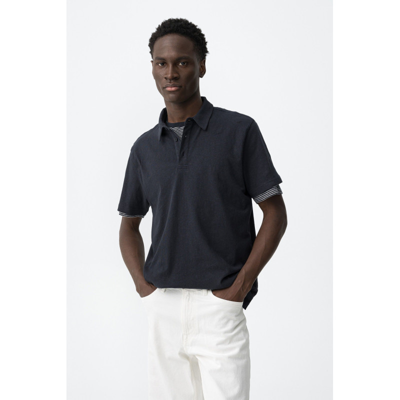 Polo de corte regular, manga corta, cuello clásico y cierre de botones discreto delante.