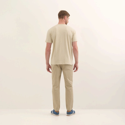 Esta camiseta de corte regular y cuello redondo en color arena es la pieza neutra por excelencia para lograr un equilibrio perfecto entre sobriedad y tendencia en tu día a día. Gracias a su confección íntegra en algodón orgánico de tacto suave garantiza una comodidad superior y una transpirabilidad ideal para combinar con pantalones cargo en tonos tierra o bajo una camisa de lino abierta para un estilo urbano relajado. Su diseño minimalista con el logotipo central en contraste refuerza la identidad deportiva de la marca convirtiéndola en un básico imprescindible que se adapta sin esfuerzo tanto a una jornada de oficina casual como a un paseo de fin de semana con una estética limpia y atemporal. Material principal: 100% Algodón orgánico.