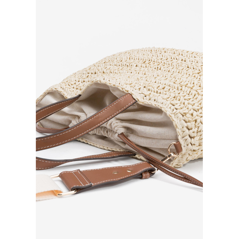 Bolso Shopper efecto paja, con piel sintética a contraste y cierre de cordón interno. Tirantes fijos y bandolera ajustable y extraíble. Interior forrado con bolsillo.