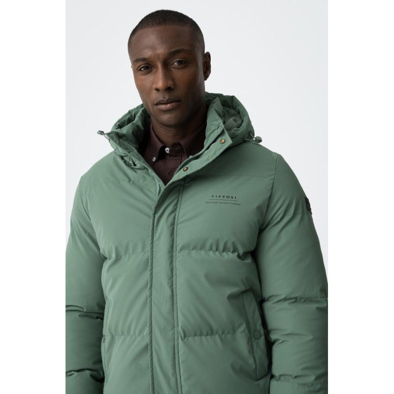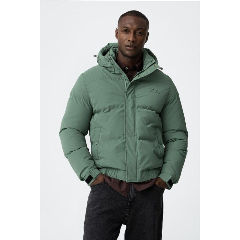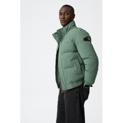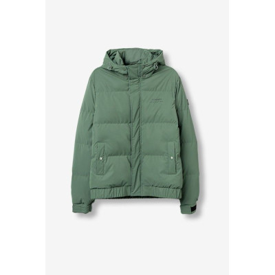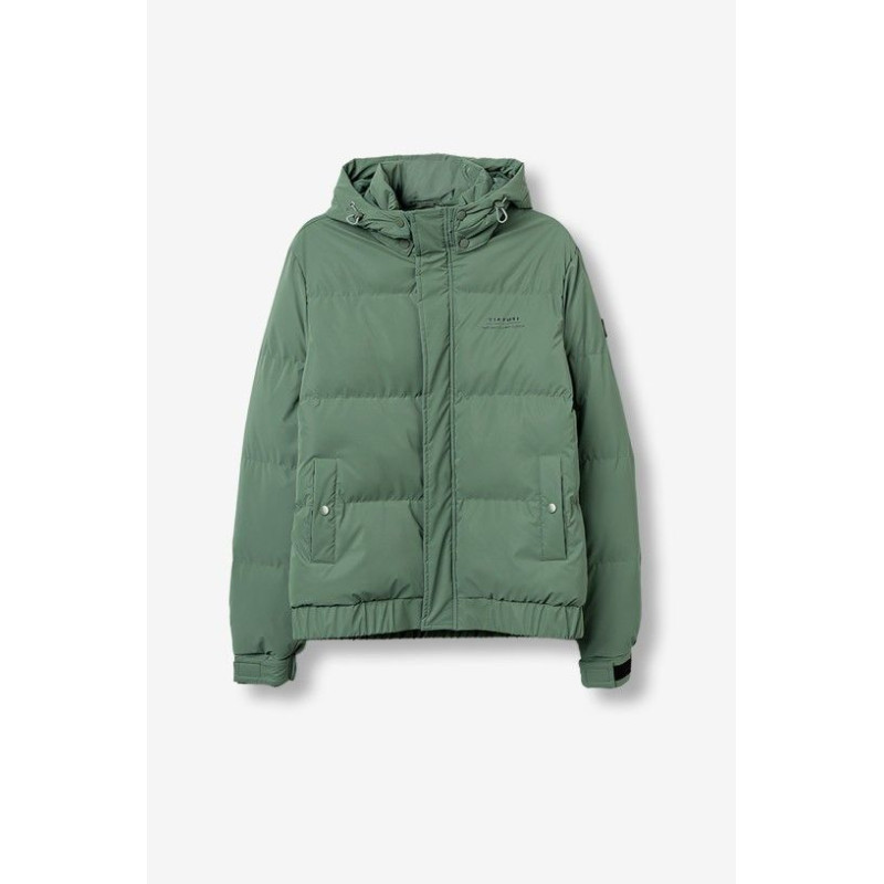 Cazadora acolchada con detalle estampado, parche de goma y dos bolsillos frontales. Cierre de cremallera y tapeta reforzada con botones de presión. Capucha ajustable y desmontable. Cuello alto, manga larga con velcro en los puños, bajo elástico y bol
