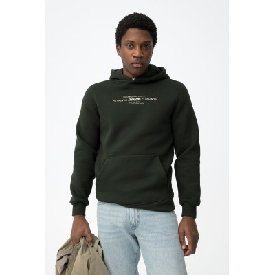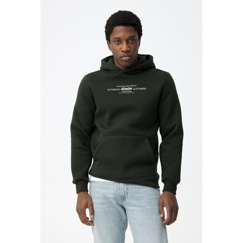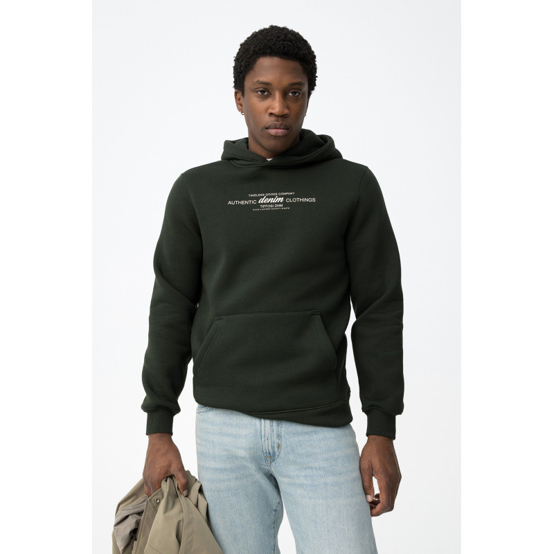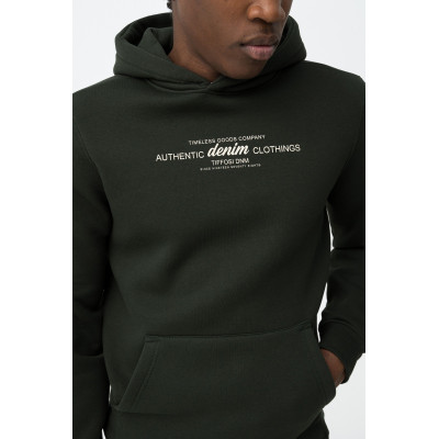 Hoodie con capucha, corte regular y texto estampado en el pecho.