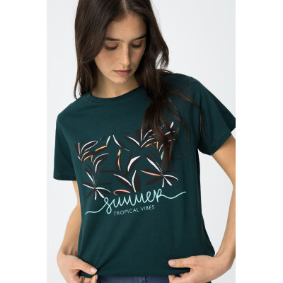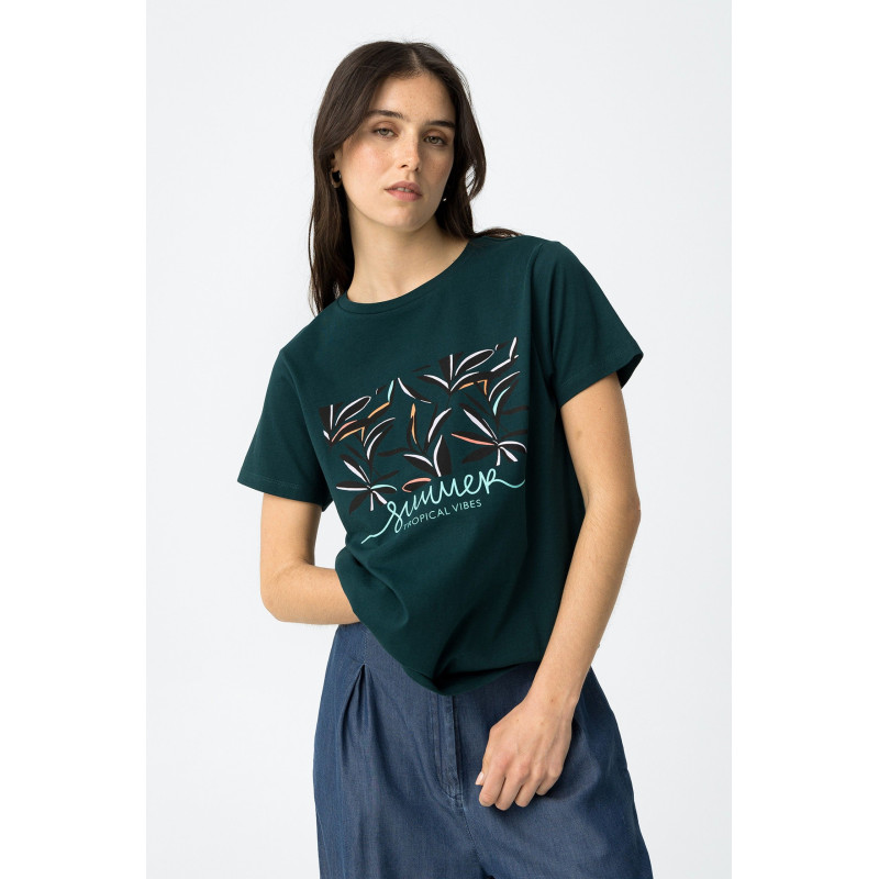 Camiseta de cuello redondo y manga corta. Estampado frontal.