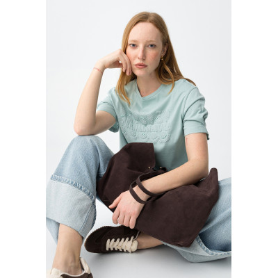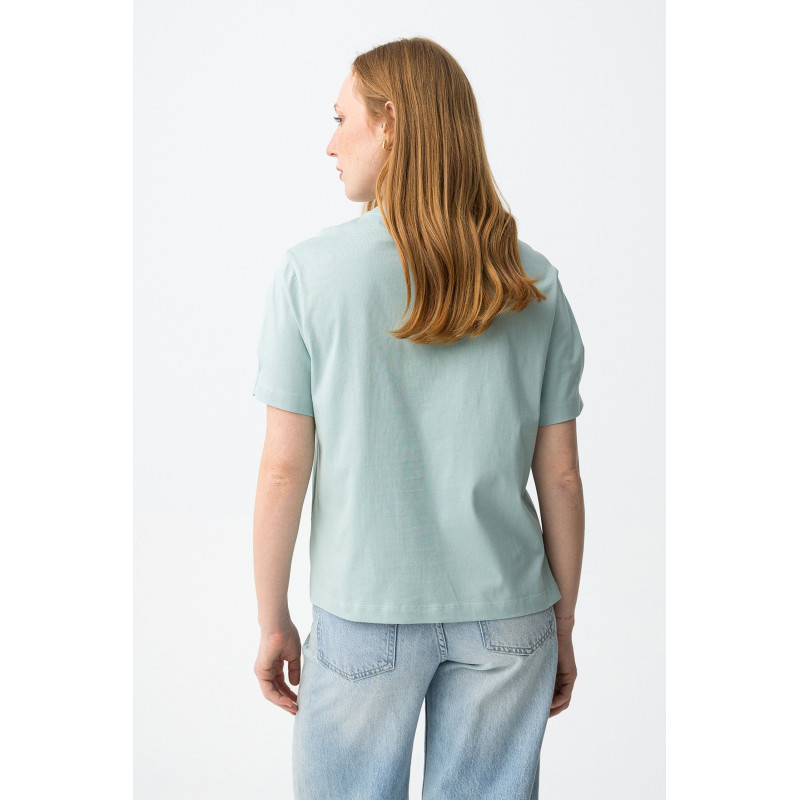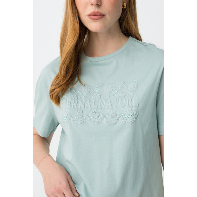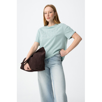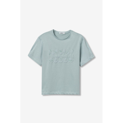 Camiseta de manga corta, corte relaxed, con bordado frontal y cuello redondo clásico.